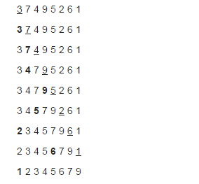 نمونه‌ی روبه‌رو طریق عملکرد آن را روی {3, 7, 4, 9, 5, 2, 6, 1} نشان می‌دهد :