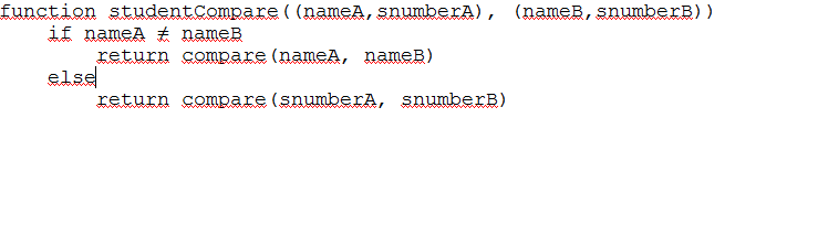 مثال: با استفاده از یک الگوریتم مقایسه‌ای می‌توان لیستی از دوتایی های شامل نام و شماره ی دانشجویی دانشجویان را ابتدا بر اساس نام ودر صورت برابری بر اساس شماره ی دانشجویی مرتب کرد :