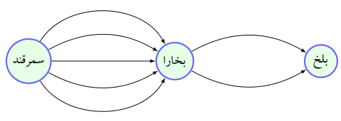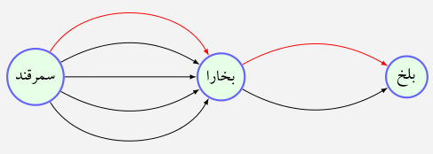 راههای ارتباطی بین سه شهر سمرقند، بخارا و بلخ به صورت زیر است: