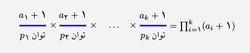 مثال: فرض کنید تجزیهی عدد طبیعی $n$ به عوامل اول، به صورت $n=p_1^{a_1}\times{}p_2^{a_2}\times{}...\times{}p_k^{a_k}$ باشد. ثابت کنید تعداد مقسومعلیههای مثبت $n$ برابر $(a_1+1)(a_2+1)...(a_k+1)$ است.