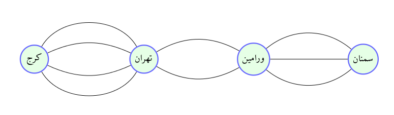 به چند طریق میتوان با استفاده از این جادهها، از کرج به سمنان رفت و به کرج برگشت؛ طوری که از هیچ جادهای دو بار عبور نکنیم؟
