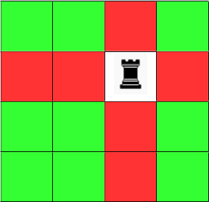 پس از قرار دادن رخ شماره ۱، رخ شماره ۲، ۹ حالت برای قرار گرفتن در جدول دارد. به همین ترتیب رخهای بعدی به ترتیب ۴ و ۱ حالت برای قرار گرفتن در جدول خواهند داشت. پس طبق اصل ضرب پاسخ برابر $$16\times9\times4\times1$$ است.