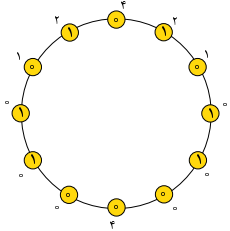 در شک مقابل یک گردنبند ۱۲-بیتی نشان داده شده و زیبایی هر یک از بیتهای آن (در کنار بیت) آمده است. دقت کنید که طول بلندترین دنبالهای که در طرفین بیت بالایی (در جهتهای مخالف) ظاهر شده، فیالواقع بینهایت است که طبق اعتقاد پریسا (دربارهی مغز انسان!) ۴ فرض گرفته میشود به همین صورت، زیبایی هر بیت یک گردنبند ۳۰-بیتی متناوب (که بیتهای آن یکی در میان صفر و یک باشد) برابر ۴ است.