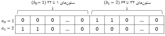 «جدولی با $n$ سطر و $32\times m$ ستون در نظر بگیرید که در خانهی $(i,j)$ $(0\leq i\leq n-1, 0\leq j\leq 32\times m-1)$ از آن $\mathrm{getBit}(a_i \oplus b_{\lfloor \frac{j}{32} \rfloor}, j \mod 32)$ نوشته شده است. در اینجا تابع $\mathrm{getBit}(x,p)$ بیت $p$ ام از عدد $x$ را برمیگرداند، برای مثال $\mathrm{getBit}(6,0)=0$ ، $\mathrm{getBit}(6,1)=1$ و $\mathrm{getBit}(6,2)=1$ هستند. تمام جدولهایی که از جدول ساخته شده با جابهجایی ستونها میتوان ساخت را در نظر بگیرید (حداکثر $32m!$ جدول متفاوت) و به ازای هر کدام از این جدولها اندازهی بزرگترین زیرجدولی (بزرگترین از لحاظ تعداد خانههای تشکیل دهنده) که تمام خانههایش $1$ است را محاسبه کنید. بیشینهی اعداد محاسبه شده برابر با میزان امنیت الگوریتم پفکی به ازای ورودیهای $a_0,a_1,\cdots,a_{n-1}$ و $b_0,b_1,\cdots,b_{m-1}$ است. دقت کنید که تنها جابهجایی ستونها مجاز است و جابهجایی سطرها مجاز نیست.»