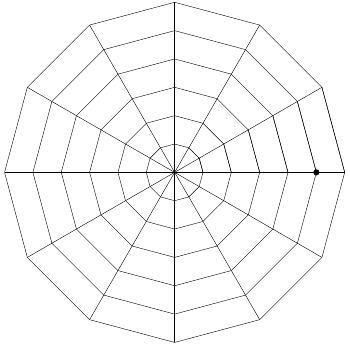 تعداد اضلاع چندضلعی محیط لانه را میزان زورمندی عنکبوت در نظر میگیریم. همچنین عکنبوت هر سال که به عمرش اضافه میشود، یک لایهی دیگر به لانهاش اضافه میکند. برای مثال لانهی بالا برای عنکبوتی شش ساله با زورمندی ۱۲ است.