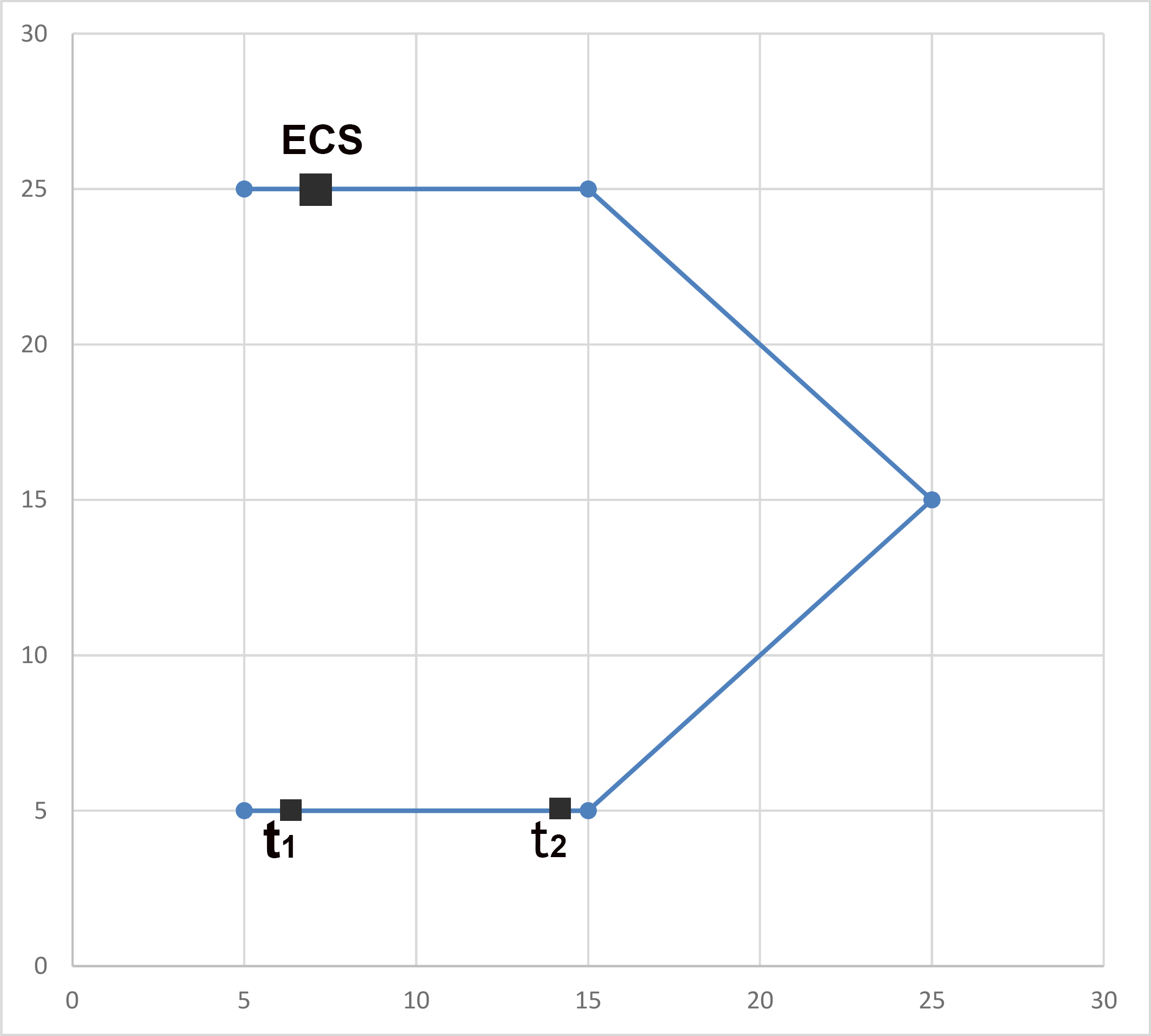 یک ایستگاه شارژ الکترونیکی (ECC) بر روی مسیر وجود دارد که در آن رباتها میتوانند باطری خود را شارژ کنند. هر ربات دستگاهی دارد که فاصله ربات تا ECC را گزارش میکند. متاسفانه این دستگاه به جای آنکه فاصلهی باقیمانده روی مسیر تا ECC را نشان دهد فاصلهی اقلیدسی ربات تا ECC را نشان میدهد.