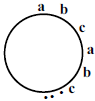 حروف ‎$b$‎، ‎$a$‎ و ‎$c$‎ را مانند شکل به‌طور متناوب دور یک دایره چیده‌ایم. می‌دانیم که در مجموع ‎۴۸‎ حرف دور دایره قرار داده‌ایم.