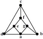 به چند طریق می‌توان پاره‌خط‌های شکل مقابل را رنگ‌آمیزی کرد به‌گونه‌ای که هر دو پاره‌خط که در یک نقطه‌ی انتهایی اشتراک دارند ناهمرنگ باشند؟ پاره‌خط‌ها را می‌توان با رنگ‌های قرمز، آبی و سبز رنگ‌آمیزی کرد و برای رنگ‌آمیزی پاره‌خط‌های متصل به رأس ‎$a$‎ می‌توان از رنگ زرد نیز استفاده کرد.