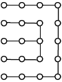 امید و حمید با هم نقطهبازی میکنند. قاعدهی بازی به این صورت است که هر نفر در نوبت خود باید یک نقطه را به یک نقطهی مجاور آن که قبلاً به آن وصل نشده، متصل کند و هرگاه یک نفر یک مربع $1 \times 1$ را کامل کرد، باید یک حرکت دیگر بهعنوان جایزه انجام دهد (دو نقطه در صورتی مجاورند که فاصلهی آنها یک باشد). امتیاز یک فرد در انتهای بازی برابر تعداد مربعهای $1 \times 1$ است که او کامل کرده است. نوبت حمید است که بازی کند و وضعیت بازی به شکل روبهرو است. در نهایت اگر هر نفر بهترین بازی خود را انجام دهد، بازی با چه نتیجهای تمام میشود؟