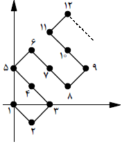 این اعداد بهترتیب در مختصات $(0,0)$ $(1, -1)$ ،$(2, 0)$٬ و … قرار دارند.