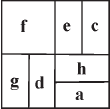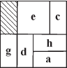 ۸ مربع هم‌اندازه با رنگ‌های $a$، $b$ ، … و $h$ را یکی پس از دیگری در یک صفحه چیده‌ایم ( هر مربع بر روی مربع‌های قرار می‌گیرد) و شکل مقابل حاصل شده است. اگر مربع با رنگ $a$ را $A$ بنامیم، و مربع با رنگ $b$ را $B$ و … ، به چه ترتیبی این مربع‌ها را چیده‌ایم؟