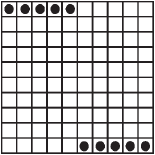 معلوم است که اگر تعداد رخها کمتر از ۱۰ باشد همه خانهها تهدید نخواهند شد زیرا در این صورت خانهای وجود خواهد داشت که نه در سطرش مهره باشد و نه در ستونش. با ۱۰ رخ مطابق شکل زیر میتوان به جواب رسید.