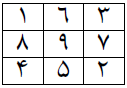 هادی و کاوه مشغول بازی هستند. بازی به این صورت است که هر نفر در نوبت خود یکی از اعداد ۱ تا ۹ را که تاکنون نوشته نشده در یکی از خانههای خالی جدول مینویسد. این کار ادامه مییابد تا جدول پر شود. در انتها٬ ۴ عدد که حاصلضربهای ۳ عدد سطر وسط٬ ۳ عدد ستون وسط و ۳ عدد روی هر قطر مربع هستند را حساب میکنند و این ۴ حاصلضرب را با هم جمع میکنند. کاوه میخواهد این مجموع را زیاد و هادی میخواهد این مجموع را کم کند. برای مثال این مجموع برای جدول روبهرو برابر است با: