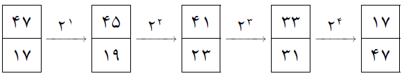 حداقل تعداد مراحل لازم برای تعویض دو عدد تمام ستون‌ها با هم‌دیگر و رسیدن به جدولی که نسبت به جدول ابتدایی قرینه شده باشد، برابر است با: