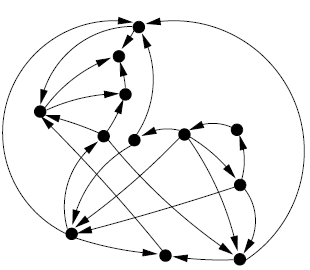 هر سال، هر نهنگی که متوجه شود هیچ نهنگ زندهای را دوست ندارد، خودکشی میکند. شکل روبهرو یک جامعه از نهنگها را نشان میدهد. اگر نهنگ $A$ به $B$ پیکان داشته باشد، یعنی $A$٬ $B$ را دوست دارد.