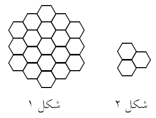 عبّاس می‌خواهد شکل ۱ را با ۶ قطعه از قطعاتی که در شکل ۲ نشان داده شده بپوشاند، به‌طوری که درست یک شش ضلعیِ پوشیده نشده در آن باقی بماند. او به چند طریق می‌تواند این کار را انجام دهد؟