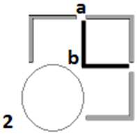 ضلع $ab$ به چهار حالت مختلف میتواند توسط شکلی که در مسئله بیان شده پر شود. شکل زیر یکی از این حالات را نمایش میدهد که خطهای طوسی نشان دهندهی حالتهایی است که منحصر به فرد تعیین میشود و دایرهها نیز میتوانند به ۲ حالت مختلف پر شوند.