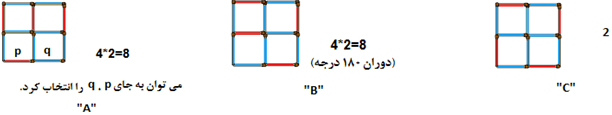 حالتهای ممکن و تعداد روشهایی که میتوان آنها را دوران داد تا شکلهای مجاز بهدست آید در شکلهای $A$و$B$و$C$ نشان داده شده است: