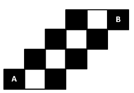 مهشید قطعه ای از صفحهي شطرنج را به شکل روبهرو بریده است. او می خواهد مهرهي شاه را از خانهی $A$ به خانهی $B$ ببرد به طوری که:
