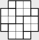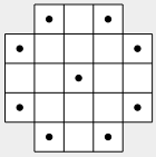 شکل زیر، یک جدول $5 \times 5$ با حذف چهار گوشهی آن است. میخواهیم این شکل را به طور کامل با کاشیهای $1 \times 1$، $2 \times 2$ و $3 \times 3$ بپوشانیم، طوری که کاشیها روی هم قرار نگرفته و از جدول بیرون نزنند. نیازی نیست از هر سه نوع کاشی استفاده کنیم. حداقل تعداد کاشیها برای انجام این کار چیست؟
