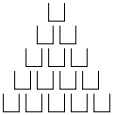 ظرفیت هر لیوان یک لیتر است. با شروع از لحظه‌ی صفر، پارسا به طور پیوسته به میزان یک لیتر بر ثانیه در لیوان بالایی آب می‌ریزد. اگر یک لیوان پر شود، آب از دو طرف آن به طور مساوی سرریز می‌کند. جاذبه را بسیار زیاد در نظر بگیرید و فرض کنید اگر آب سرریز شود، به سرعت به لیوان پایینی منتقل می‌شود. فرض کنید $t$، نخستین لحظه‌ای بر حسب ثانیه باشد که به یکی از لیوان‌های ردیف پایین قطره‌ای از آب برسد. نزدیک‌ترین عدد صحیح به $t$ چیست؟