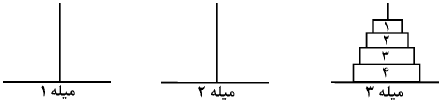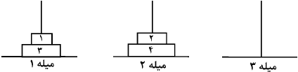 میخواهیم با حرکت دادن این مهرهها و رعایت قواعد زیر کلیهی مهرهها را به صورت زیر بر میلهی سوم ببریم: