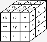 مکعب کوچک را مطابق شکل از ۱ تا ۲۷ شمارهگذاری میکنیم. ۲۷ مجموعهی سهتایی عبارتاند از: