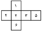 یک تاس که شکل باز شدهی آن را میبینید، روی میز قرار دارد و علی و مجید دو