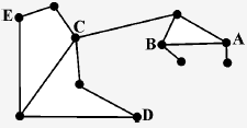 در نقشه شهرهایی که باید در آنها مراکز کنترل ترافیک ایجاد کرد با $D،C،B،A$ و $E$ نمایش داده شدهاند؛ یعنی پنج شهر.