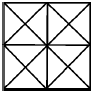 تمام مثلثهای موجود در شکل قائمالزاویه میباشند. ضلع مربع بزرگ را ۲ در نظر میگیریم. به تعداد ۱۶ عدد مثلث قائمالزاویه با طول وتر واحد وجود دارد. به تعداد ۱۶ مثلث با ضلع زاویهی قائمه واحد وجود دارد.(در داخل هر مربع به ضلع واحد ۴ عدد). به تعداد ۸ مثلث با طول وتر ۲ وجود دارد.( ۴ عدد از آنها راسشان اوساط اضلاع مربع و وترهایشان اضلاع مربع میباشد و ۴ عدد دیگر از آنها راسشان اوساط اضلاع مربع بوده و وترهایشان پارهخطهایی هستند که اوساط اضلاع مقابل را به هم وصل میکنند). و بالاخره به تعداد ۴ عدد مثلث که طول ضلع زاویهی قائمه آنهابرابر با ۲ بودهو راسشان راس مربع و وترهایشان قطرهای مربع میباشند وجود دارد. در نتیجه در مجموع ۴۴ مثلث در شکل دیده میشود.