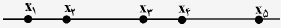 نقاط را از چپ به راست $x_4،x_3،x_2،x_1$ و $x_5$ مینامیم. در این صورت مجموع دوبهدوی آنها برابر خواهد بود با: