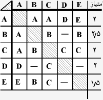 در یک مسابقه شطرنج که به صورت دورهای برگزار میشود(یعنی هر دو بازیکن باهم دقیقا یک بار روبهرو میشوند) ۵ بازیکن $D،C،B،A$ و $E$ شرکت کردهاند. تاکنون نتایج زیر بهدست آمده است:
