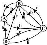 در شکل زیر خط‌هایی که با $r$ مشخص شده‌اند٬ قرمز و آن‌هایی که با $b$ مشخص شده‌اند آبی هستند.