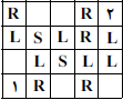 در جدول مقابل برای رسیدن به خانهی $b$ اگر خانهی ۱۳ وارد شویم لازم است به خانهی ۱۳ از خانهی ۱۴ وارد شویم. برای وارد شدن به خانهی ۱۳ از ۱۴ بهطوری که به راست بپیچیم باید از خانهی ۱۹ وارد شویم. برای این که با گردش به چپ از ۱۹ به ۱۴ وارد شویم باید از خانهی ۱۸ به خانهی ۱۹ وارد شویم و اگر به همین ترتیب ادامه دهیم دنبالهی حرکت به شکل زیر خواهد بود که ۱۳ حرکت میباشد: