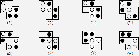 سه مهره‌ی سیاه و سه مهره‌ی سفید در صفحه‌ای مانند شکل مقابل قرار دارند. دو خانه از این شکل که در یک ضلع یا در یک راس باهم مشترک باشند را «مجاور» هم می‌نامیم. یک مهره‌ی $A$ را می‌توان با یکی از حرکت‌های زیر جابه‌جا کرد: