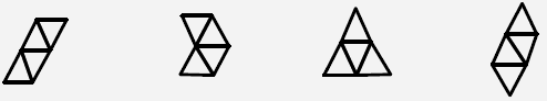 چهار مثلث متساویالاضلاع یکسان را در نظر بگیرید. یک مثلثبندی یعنی به ترتیب کنار هم قرار دادن مثلثها در صفحه٬ به طوری که هر مثلث حداقل در یک ضلع٬ با یکی از مثلثهای قبلی مشترک باشد و با هیچ یک از آنها همپوشانی نداشته باشد. تعداد مثلثبندیها را بشمارید و در این شمارش٬ مثلثبندی هایی که با دوران در صفحه به هم تبدیل میشوند را یکبار در نظر بگیرید. این تعداد چندتاست؟