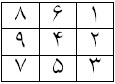 میخواهیم خانههای یک جدول $n \times 3$ (با $n$ سطر و ۳ ستون) که $n$ عددی فرد است را با اعداد ۱ تا $3n$ به گونهای پر کنیم که هر عدد دقیقاً در یک خانه نوشته شود و مجموع اعداد نوشته شده در هر یک از $n$ سطر با سطرهای دیگر یکسان باشد. مثلاً برای $n =3$٬ در جدول زیر که از اعداد ۱ تا ۹ پر شده است جمع اعداد خانههای هر سطر برابر ۱۵ است.