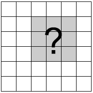 احمد یک زیرجدول $۳ \times ۳$ از جدول $۶ \times ۶$ مقابل را انتخاب کرده است. علی قصد دارد با تعدادی پرسش محل این مربع را کشف کند. او در هر نوبت میتواند به یکی از خانههای جدول اشاره کند و از احمد بپرسد که آیا این خانه در مربع مورد نظر او قرار دارد یا خیر. کمترین تعداد پرسشهای لازم برای آن که علی بتواند مکان مربع احمد را کشف کند چند تاست؟ برای اثبات ادعای خود٬ باید یک روش ارائه دهید و نیز نشان دهید با کمتر از این تعداد سوال نمیتوان همیشه به جواب رسید.