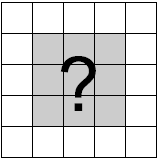 احمد یک مربع $۳ \times ۳$ در جدول $۵ \times ۵$ مقابل انتخاب کرده است. علی قصد دارد با تعدادی پرسش محل این مربع را کشف کند. او در هر نوبت میتواند به یکی از خانههای جدول اشاره کند و از احمد بپرسد که آیا این خانه در مربع مورد نظر او قرار دارد یا خیر. کمترین تعداد پرسشهای لازم برای آن که علی بتواند مکان مربع احمد را کشف کند چند تاست؟ برای اثبات ادعای خود٬ باید یک روش ارائه دهید و نیز نشان دهید با کمتر از این تعداد سوال نمیتوان همیشه به جواب رسید.