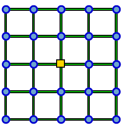 شکل زیر یک شهر را با ۲۴ خانه (دایرهها) و یک اداره پست (در مرکز) نشان میدهد. این شهر ۴۰ خیابان به طول ۱ دارد که هر خیابان دو محل (خانه یا اداره پست ) را به یکدیگر متصل میکند. ۳ پستچی وظیفه دارند نامههای مردم را از ادارهی پست به درب خانهشان برسانند.