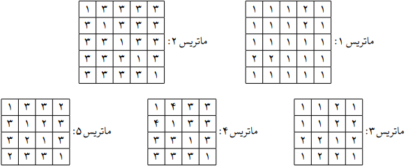 کدام یک از ماتریسهای زیر، میتواند یک ماتریس مسیریاب باشد؟