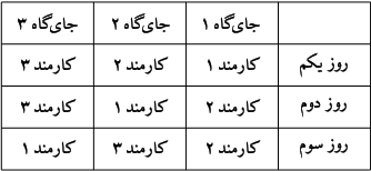 برای مثال اگر $n=3$ باشد، کارمندان در سه روز نخست به ترتیب زیر در جایگاهها پارک میکنند: