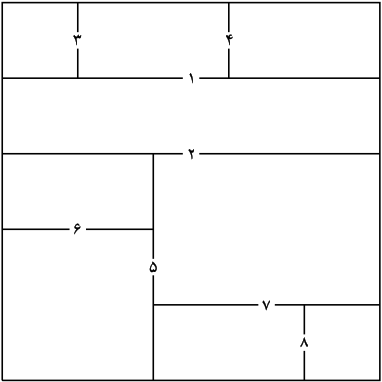 شکل زیر خط کشی حیاط باشگاه برای $n=2$ و این‌که هوشنگ هر چهار ضلع جدول را انتخاب کند را نشان می‌دهد (عدد روی خطوط نشان دهنده ترتیب کشیده شدن آنهاست).